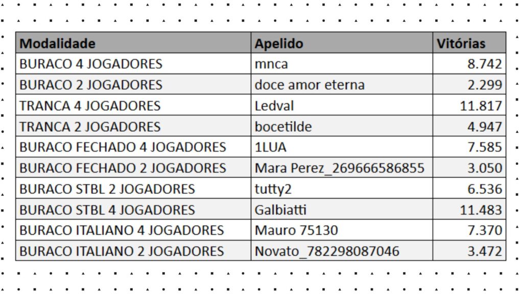 Agora, chegou o momento de destacar quem mais venceu: a lista dos jogadores que conquistaram o maior número de vitórias em cada categoria ao longo de todo o ano de 2025.