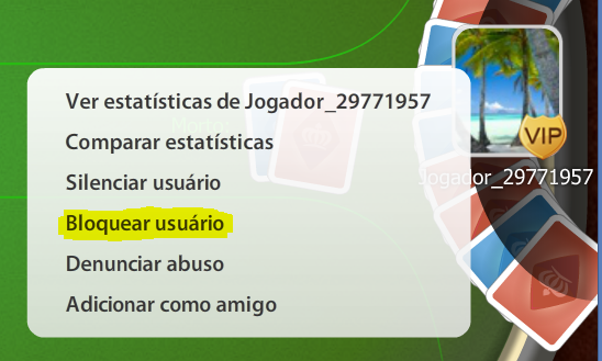 Em jogo, clique sobre o avatar/imagem do Jogador que deseja bloquear.