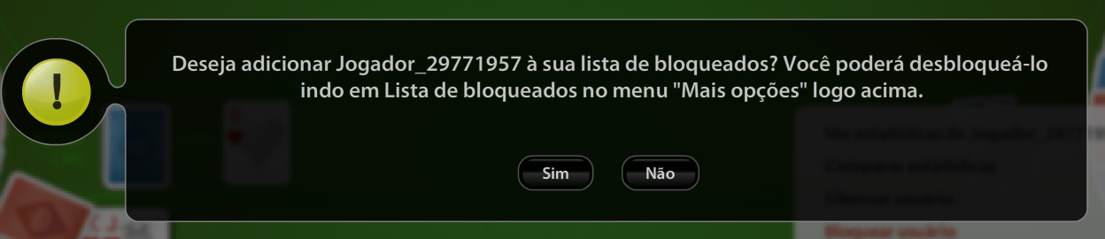 Confirme remoção do Jogador de sua lista de bloqueados.