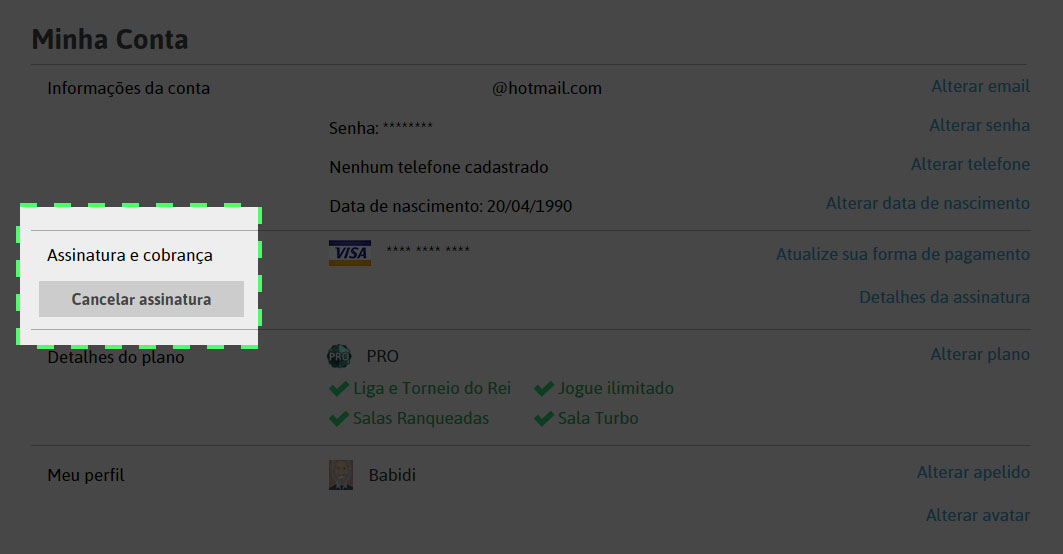 Na tela que irá abrir você deve clicar no botão Cancelar assinatura.