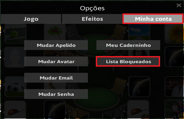 Clique na guia "Minha conta" e em seguida em "Lista Bloqueados".