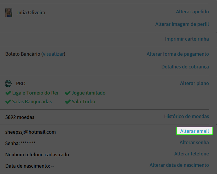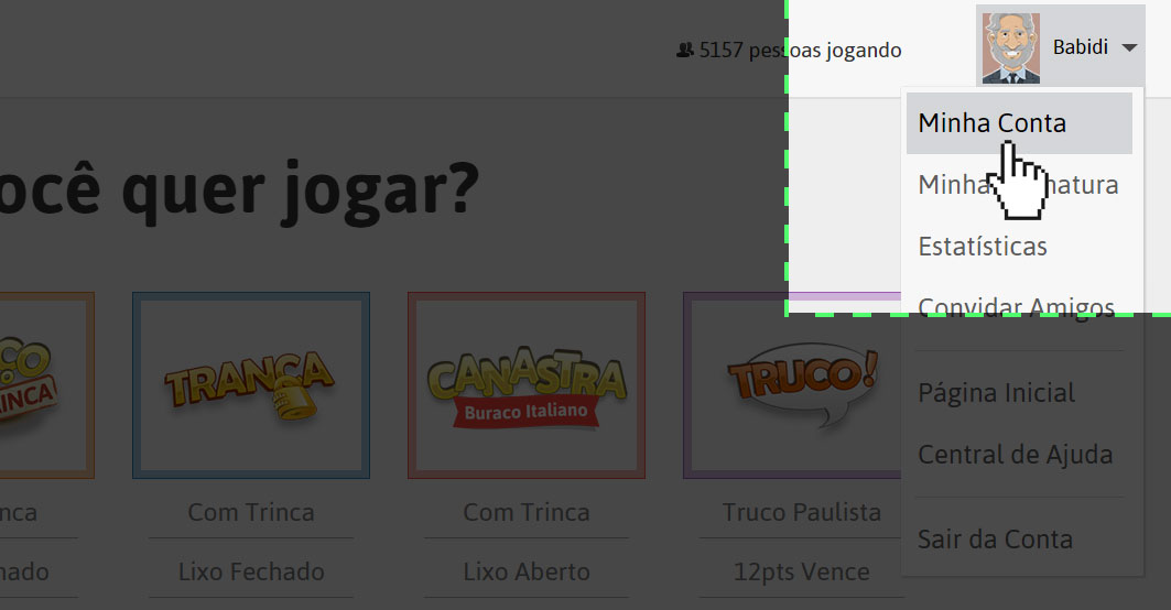Primeiramente vá no menu do jogador e clique em minha conta: