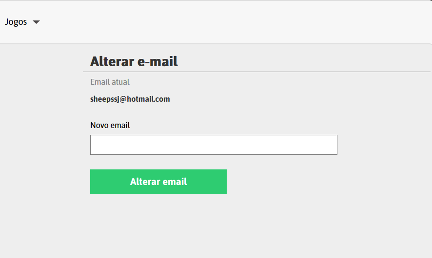 Após isso basta digitar seu e-mail na tela seguinte e clicar em "Alterar E-mail", e então um e-mail de confirmação será enviado para o e-mail que foi digitado: