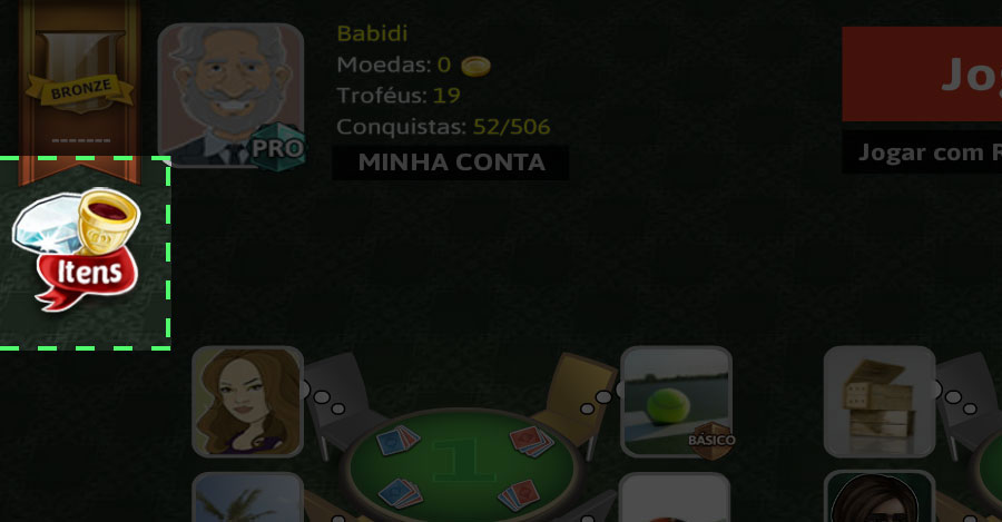 Você deve clicar no ícone de itens, no canto esquerdo do seu jogo.