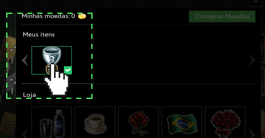 Abrirá a lista de itens que você possui na parte de cima e na parte de baixo fica a loja, onde você poderá comprar itens com as moedas.