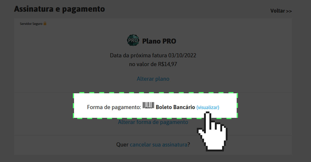 Parar gerar seu boleto você deve ir na página de Minha Assinatura.