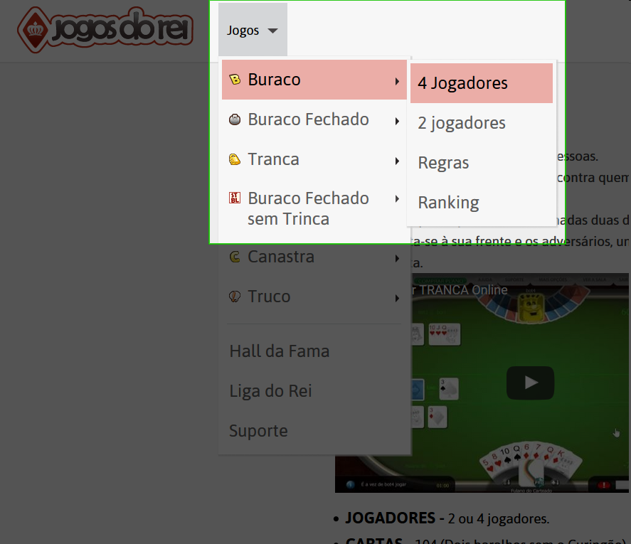 Após entrar na sua conta siga para a página de jogos e escolha o seu jogo preferido, ou ainda coloque o ponteiro do mouse sobre o menu jogos e escolha seu jogo preferido.