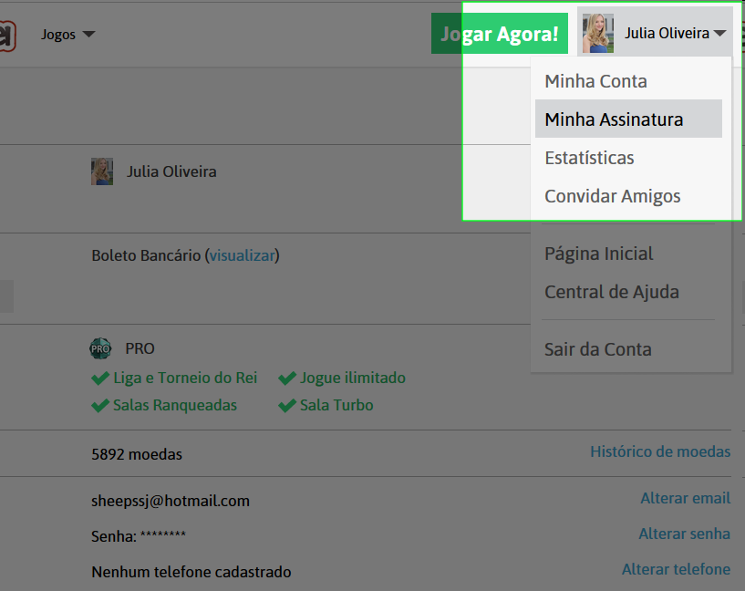 Para saber qual assinatura sua conta utilizada basta colocar o mouse sobre o menu do usuário e então clica na opção "Minha assinatura".
