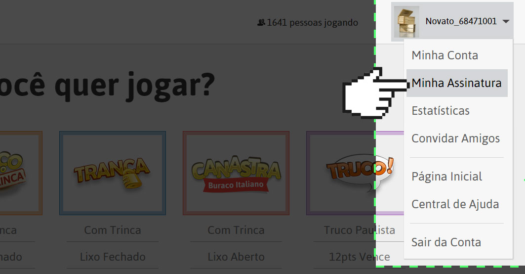Vá até a tela de sua assinatura, pelo menu do usuário na tela de jogos e clicando em cima de Minha Assinatura.